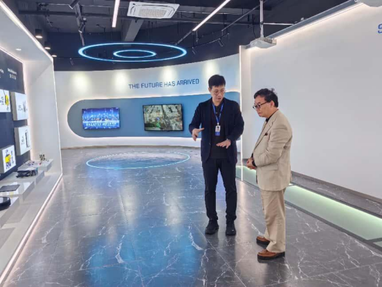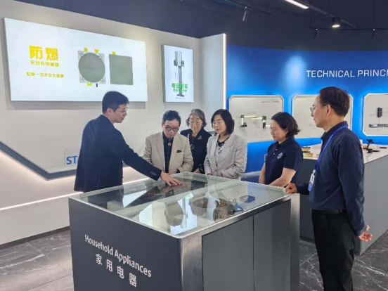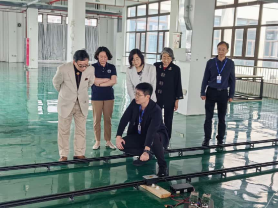 在技术展厅,李凌瀚博士向周院士一行重点演示了公司磁共振无线供电技术在各个领域中的应用场景,中惠创智无线供电技术突破传统线缆束缚,通过磁共振耦合技术实现千瓦级功率无线传输,传输效率达92%以上,已成功应用于城市交通、城市物流动态供电、智能制造、无尾厨电等领域。
